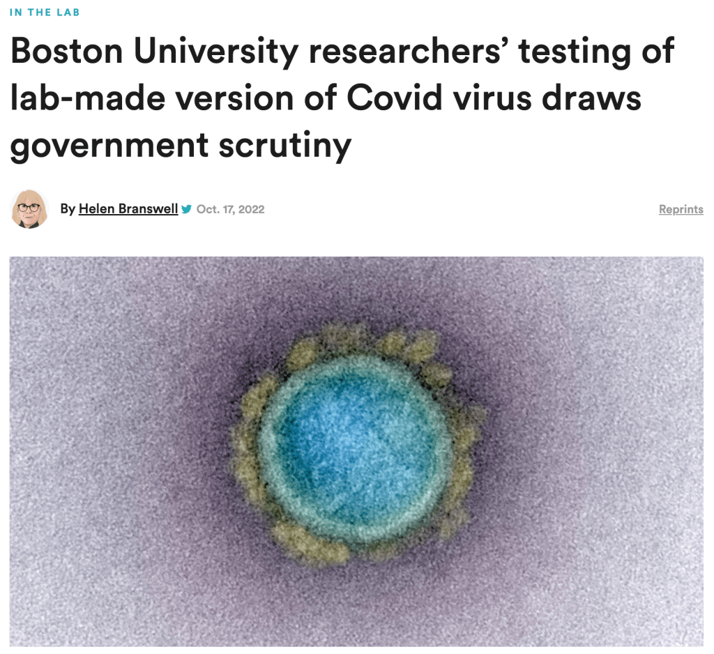 I don’t recall any accusations of doing gain of function research IN ANY OTHER LAB in the world. But we now have evidence that it WAS, IS, and CONTINUES to happen. Not only that but a lab at Boston University- through gain of function application that has a kill rate of 80% in lab rats, meaning it is potentially and likely exponentially more deadly than anything heretofore known to mankind. And that begs the question, where the hell is Rand Paul and why is he not leading the charge to get to the bottom of this “extinction level event (ELE)” virus that was created through gain of function?!